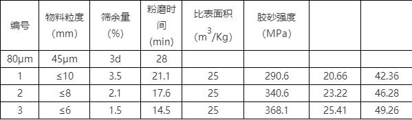 水泥粉磨系統(tǒng)從配料、預(yù)破碎到粉磨、選粉,組成了一個(gè)有機(jī)的體系。對(duì)預(yù)粉碎的要求,主要是盡可能減小入磨物料的粒度(即做到多破少磨),減輕磨機(jī)負(fù)荷,為磨機(jī)高產(chǎn)創(chuàng)造條。下面是一組不同粒徑物料的粉磨對(duì)比試驗(yàn)。
