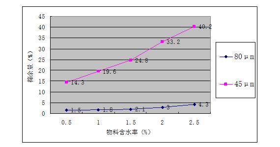 圖片 圖1 物料含水率對(duì)水泥細(xì)度的影響