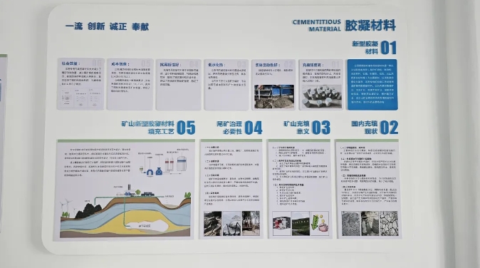 江背基地占地100余畝,新建了2000平方的展示、實(shí)驗(yàn)中心和配套辦公場(chǎng)所,其中展示中心主要展示礦山尾礦治理的各種先進(jìn)工藝和材料,包括先進(jìn)尾礦充填專用膠凝材料、尾礦充填專用化學(xué)助劑、新型尾礦再提再選高分子選礦藥劑,及尾礦綜合利用應(yīng)用于新型建材的各種產(chǎn)品,包括采用尾礦生產(chǎn)新型市政交通預(yù)制構(gòu)件、尾礦生產(chǎn)發(fā)泡輕質(zhì)墻體材料及各類粉磨工藝的膠凝材料。